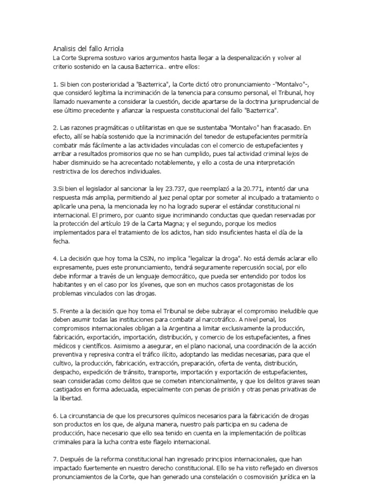 Resumen fallo Montalvo Montalvo Ernesto A. Ahora en Arriola la Corte retom y dijo sostener los principios sentados en Bazterrica.