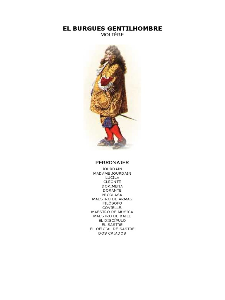 Fichas PEdaggicas de El Burgues Gentilhombre - Moliere. La comedia trata temas que de otro modo no tomaran tanta importancia y trascendencia. El 14 de octubre de 1670 el Castillo Real de Chambord construccin de perfil renacentista que se ubica en la zona de los Pases del Loira se convirti en escenario del estreno de El burgus gentilhombre una comedia ballet compuesta en prosa y dividida en cinco actos estrenada por la.