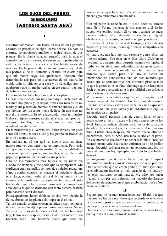 Antonio Santa Ana Publicado en. Ezequiel el difunto hermano del protagonista era 13 aos mayor que l. Si alguien est buscando Los Ojos Del Perro Siberiano Resumen Corto.