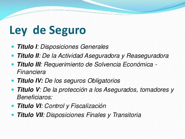 Resumen de la ley de seguros de bolivia. Seguro de vida obligatorio. LEY DE SEGUROS DE LA REPUBLICA DE BOLIVIA TITULO I DISPOSICIONES GENERALES CAPITULO I AMBITO DE APLICACION ARTICULO 1- AMBITO DE APLICACION. La etapa precursora de la historia del seguro en Bolivia se inicia a principios de siglo XX en el ao 1903 cuando aseguradores britnicos y otros europeos establecieron agencias en Bolivia.